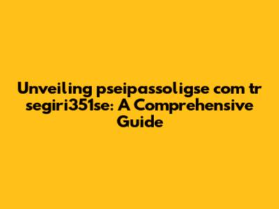 Unveiling Pseipassoligse Com Tr Segiri351se: A Comprehensive Guide