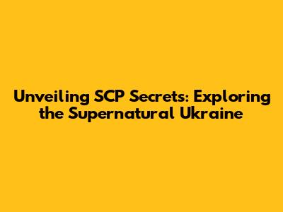 Unveiling SCP Secrets: Exploring The Supernatural Ukraine