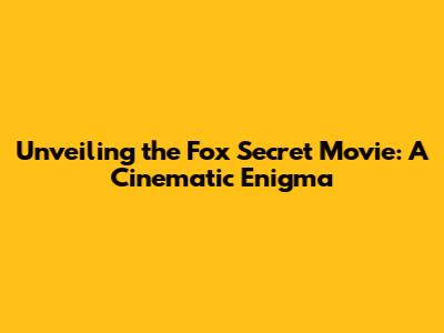 Unveiling The Fox Secret Movie: A Cinematic Enigma