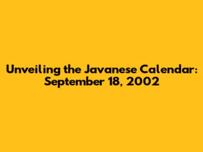 Unveiling The Javanese Calendar: September 18, 2002