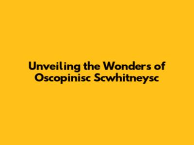 Unveiling The Wonders Of Oscopinisc Scwhitneysc