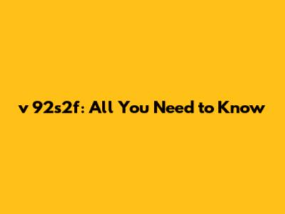 V 92s2f: All You Need To Know